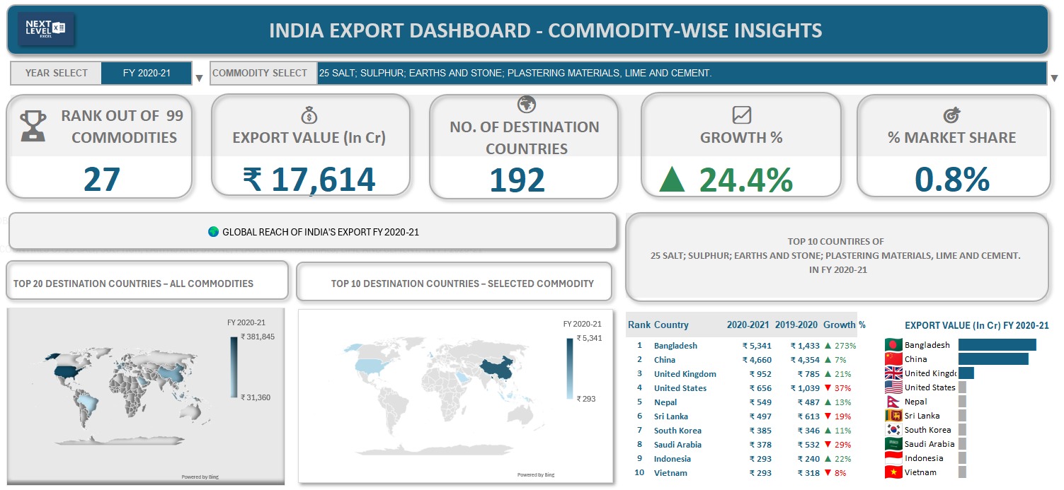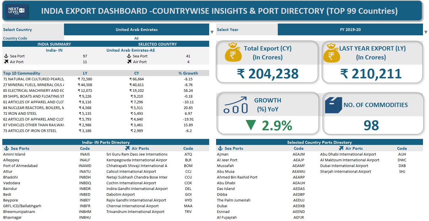 These dashboards help visualize export performance, track growth trends, and identify opportunities for better decision-making in international trade. SMEs, Exporters, Trainers, and Students can benefit from these insights.